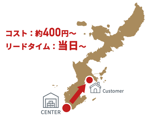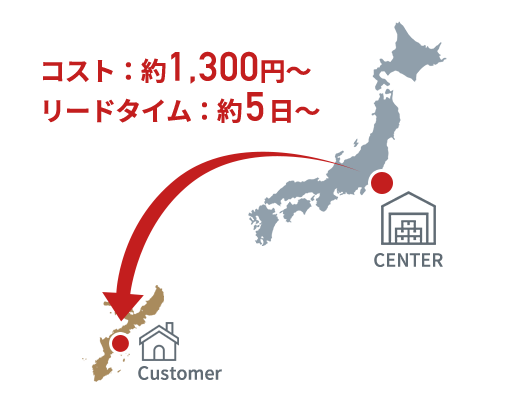 1件1件沖縄へ向けて商品を発送するので当然配送コストは高く、お届けまでのリードタイムも長くなります。